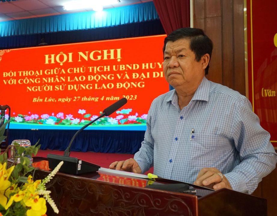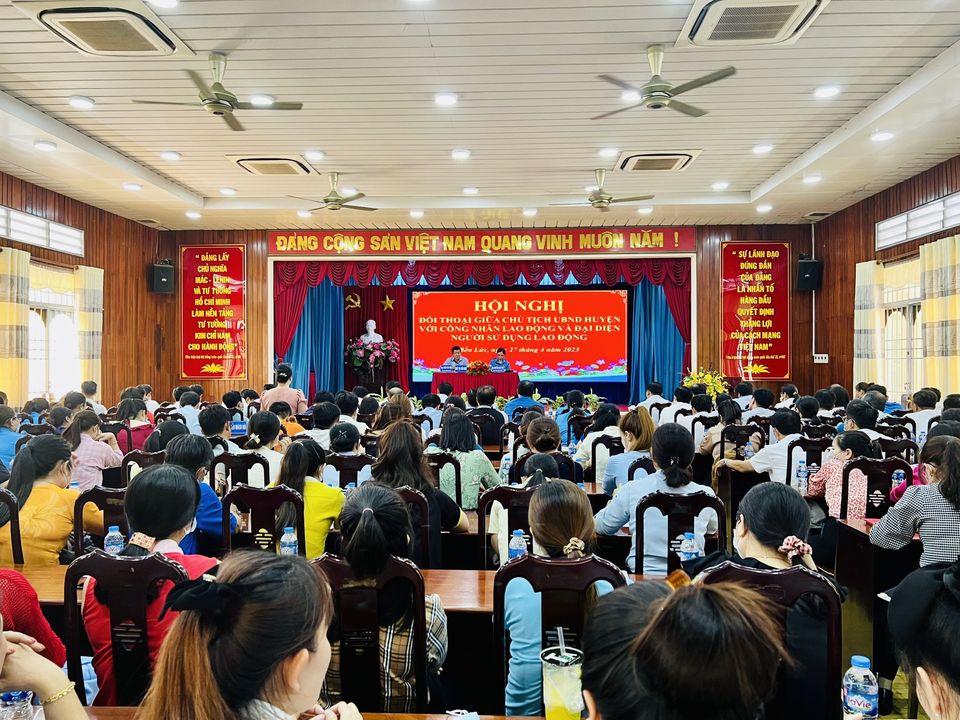 Chiều ngày 27/4/2023 Uỷ ban nhân dân huyện Bến Lức đã tổ chức hội nghị đối thoại giữa Chủ tịch UBND huyện với công nhân lao động và đại diện người sử dụng lai động.